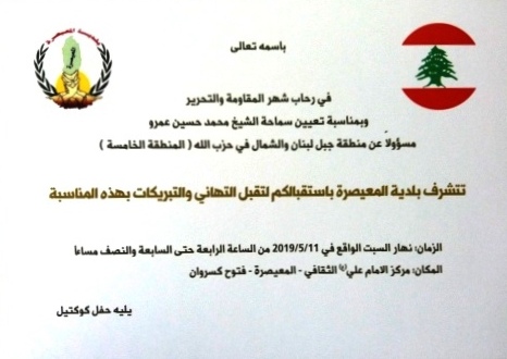 وبمناسبة تعيين سماحة الشيخ محمد حسين عمرو