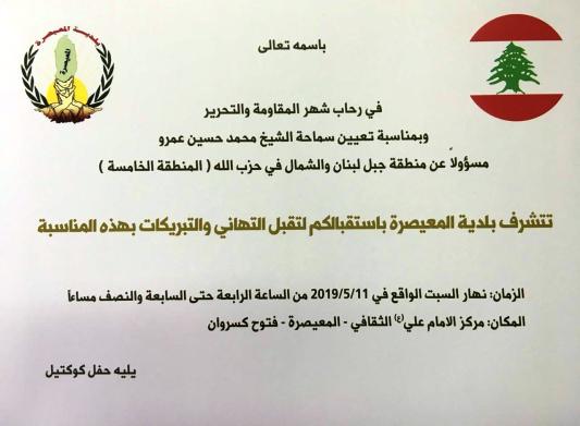 تتشرف بلدية المعيصرة بإستقبالكم لتقبل التهاني والتبريكات بهذه المناسبة