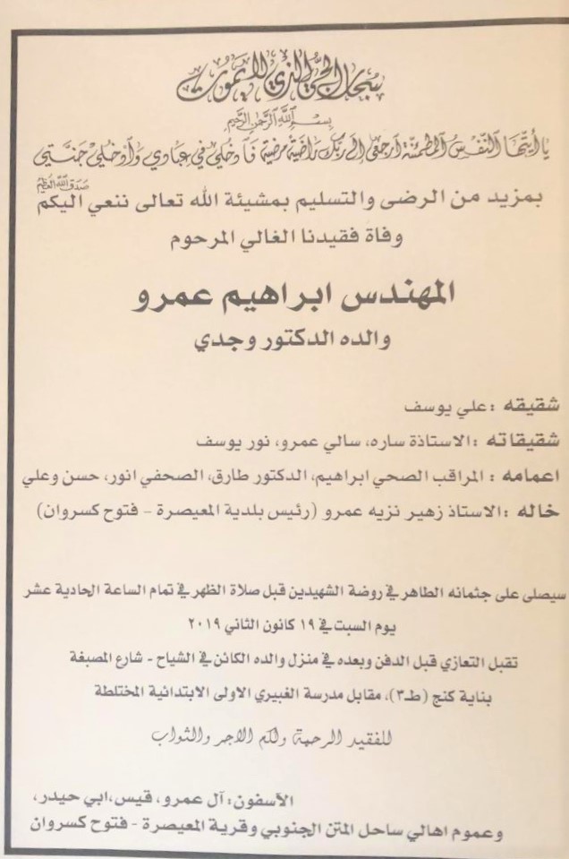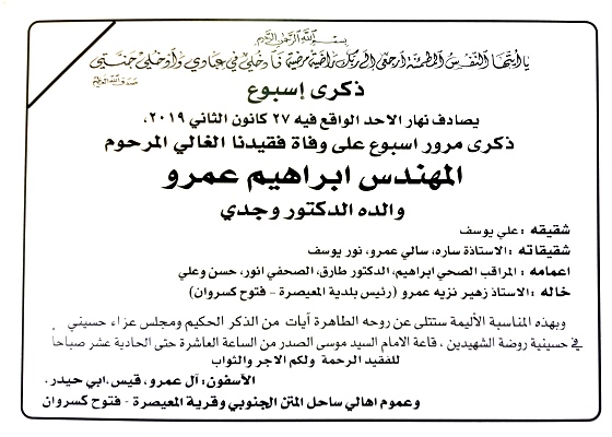 ألف شكر لكافة أهالي بلدة المعيصرة