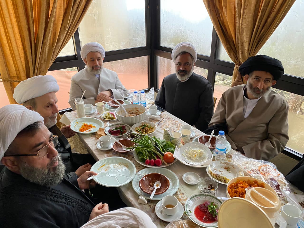 بعدها دعي الجميع الى مأدبة طعام ( ترويقة ) ومن ثم قاموا بتقطيع قالب الحلوى حيث قدم رئيس بلدية المعيصرة الحاج زهير عمرو كتاب المعيصرة وعشيرة آل عمرو الوائلية للعلامة العباسي الذي القى كلمة في نهاية اللقاء شكر الحاضرين على الاستضافة الكريمة واعدا بالمزيد من التقديمات واضعا كافة امكانات جامعة المصطفى(ص) العالمية بتصرف هذا الفرع المبارك في المعيصرة