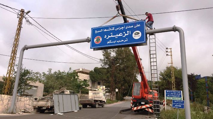 تركيب يافطات ترحيبية عملاقة على مدخلي البلدة