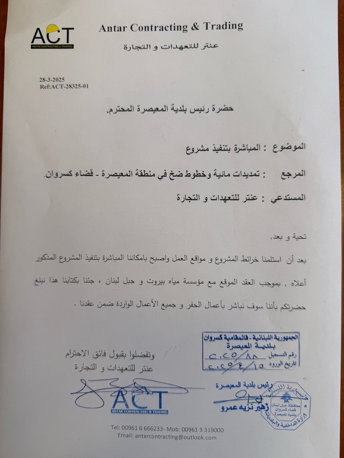 بتاريخ ١٩/٤/٢٠٢٣ اي بعد مرور سنتين على صدور الحكم بدفع هذا المبلغ عقد اتحاد بلديات كسروان جلسة ووافق على دفع مبلغ ستة الاف وخمسماية دولار امريكي لصالح شركة عمرو للاعمار (٦٥٠ مليون ليرة )اي ما نسبته الواحد والنصف بالمئة من الكلفة الاساسية للمشروع*